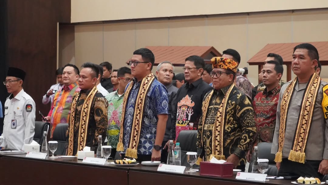 Bandarlampung – Ketua DPRD Provinsi Lampung, Ahmad Giri Akbar SE., M.B.A. , Menghadiri Undangan Rapat Pleno Terbuka Penetapan Pasangan Calon Gubernur dan Wakil Gubernur Lampung Terpilih pada Pemilihan Serentak Tahun 2024 di Hotel Emersia, Kamis (9/1).