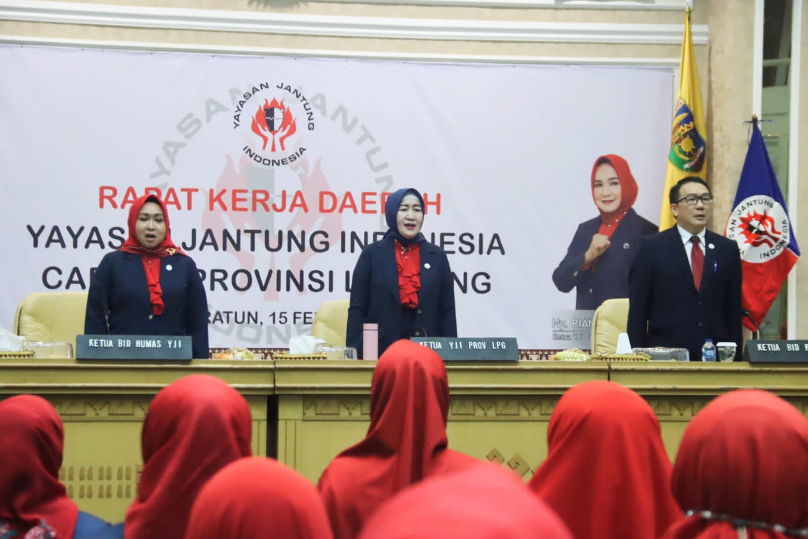 Bandarlampung – Ketua Yayasan Jantung Indonesia (YJI) Provinsi Lampung, Riana Sari Arinal yang diwakili oleh Wakil Ketua Bidang Pengembangan Dana, Mamiyani Fahrizal membuka Rapat Kerja Daerah (RAKERDA) Yayasan Jantung Indonesia Cabang Provinsi Lampung di Balai Keratun, Rabu (15/2).