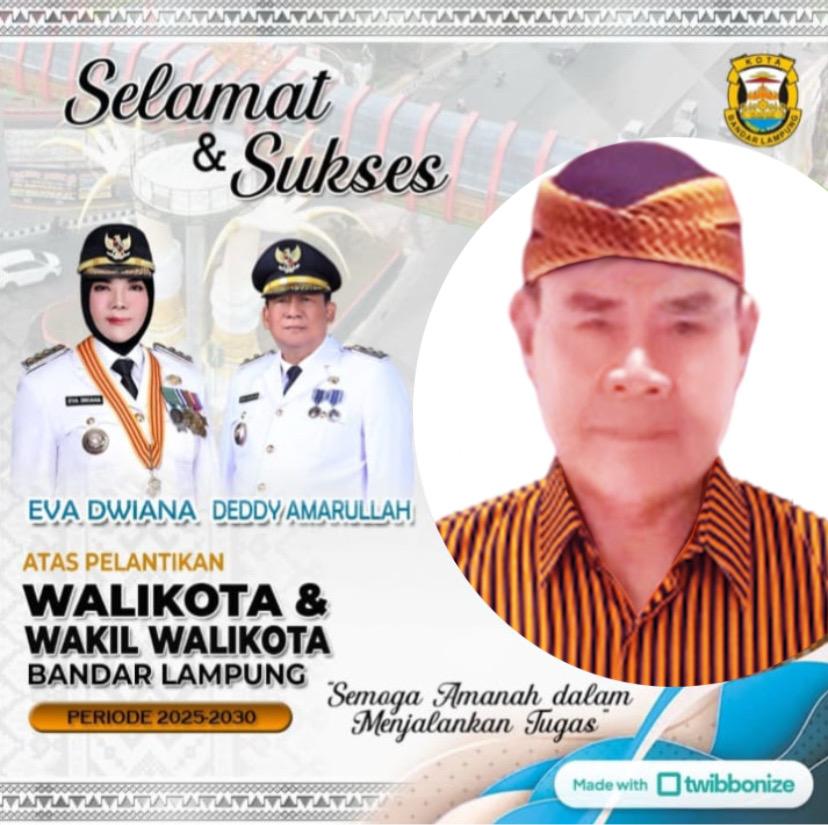 Bandar Lampung – Ketua DPW PKB Pujakesuma Lampung Ki Hi Nuryono menyampaikan ucapan selamat atas dilantiknya Rahmat Mirzani Djausal, ST, MM dan dr.Jihan Nurlela, MM sebagai Gubernur dan Wakil Gubernur Lampung, masa bhakti 2025-2030.