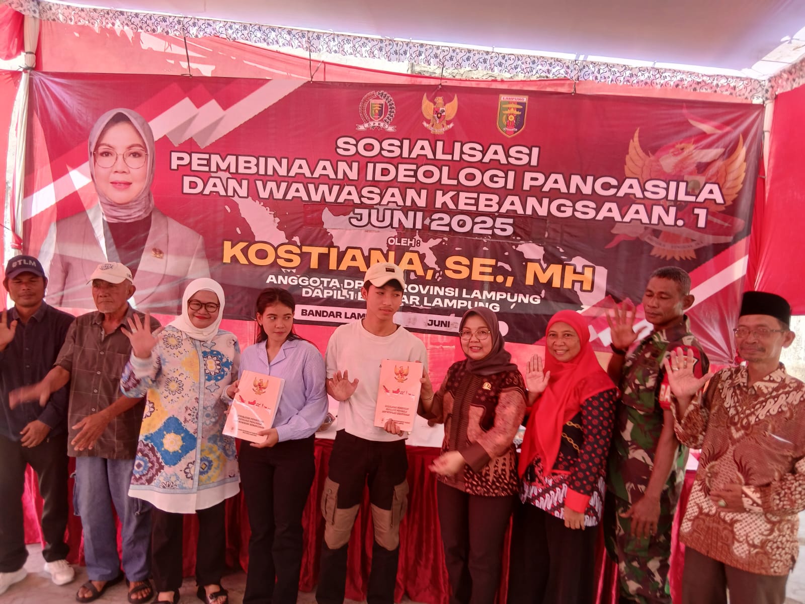 Bandar Lampung – Wakil Ketua I DPRD Lampung dari Fraksi PDI Perjuangan Kostiana, SE, MH menggelar sosialisasi Pembinaan Ideologi Pancasila dan Wawasan Kebangsaan ( PIP – WK ) di Kelurahan Kuripan, Kecamatan Teluk Betung Barat, Kota Bandar Lampung, Rabu ( 4/06/2025 ).