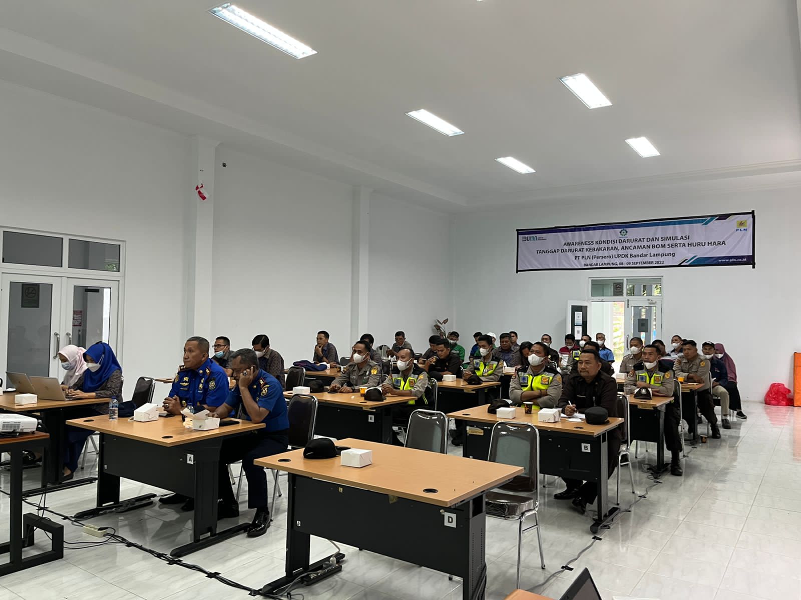 Sebagai salah satu komitmen PLN dalam hal K3 untuk mendukung target Zero Accident, maka dilakukan simulasi tanggap darurat yang diikuti oleh Manajemen, Pegawai dan Tenaga Alih Daya (TAD) di lingkungan PT PLN (Persero) UPDK Bandarlampung yang dilaksanakan di Aula Kantor PT PLN (Persero) UPDK Bandarlampung, Kamis (8/9). Simulasi ini dilaksanakan satu tahun sekali sebagai salah satu upaya tanggap keadaan darurat seperti gempa bumi, aksi huru-hara, teror bom, dan kebakaran.