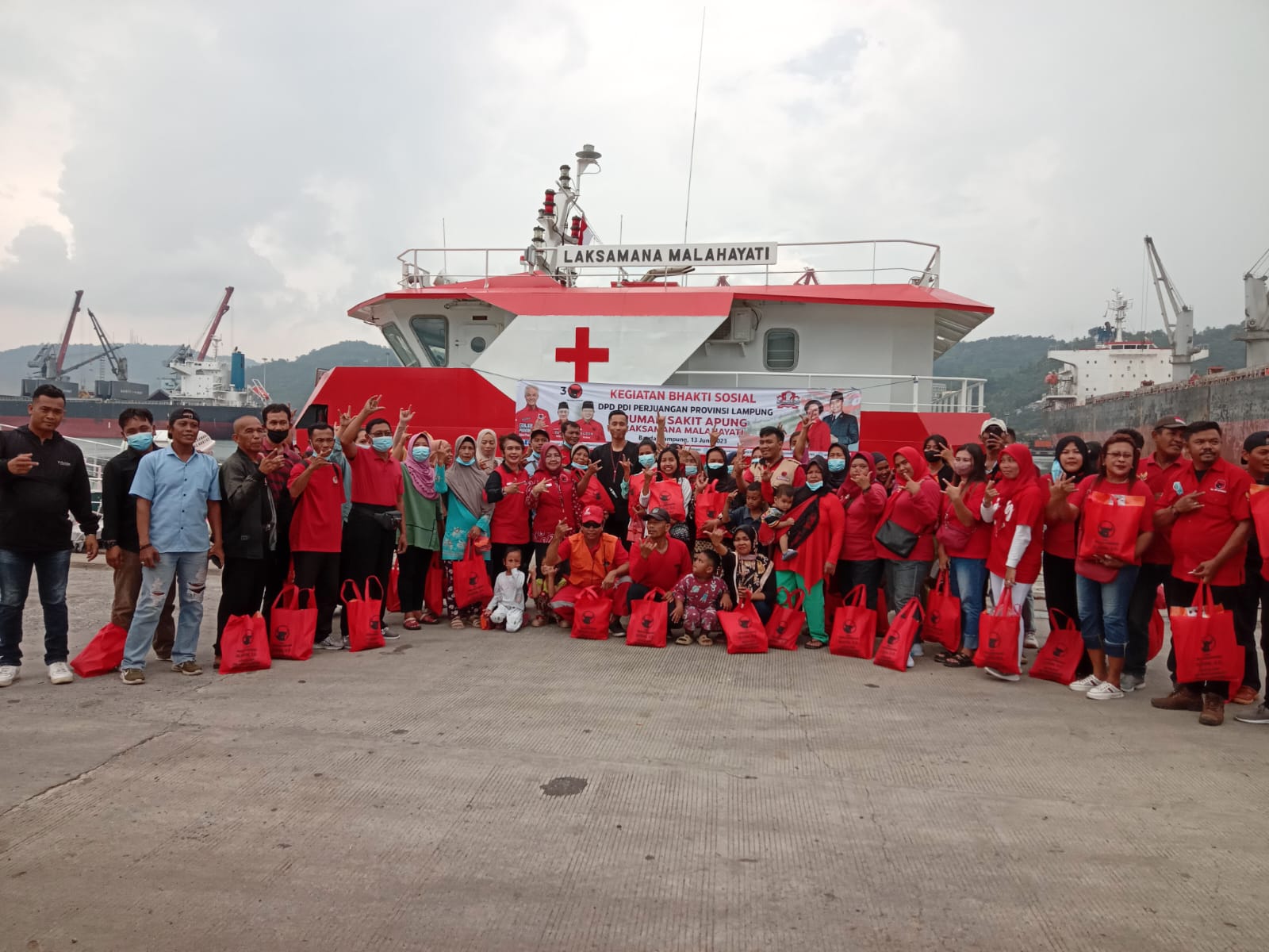 Menurut Kostiana, SE, MH, Bendahara DPD PDI Perjuangan Lampung, kegiatan pelayanan kesehatan gratis sekaligus launching Kapal Rumah Sakit Terapung (RST) Laksamana Malahayati.