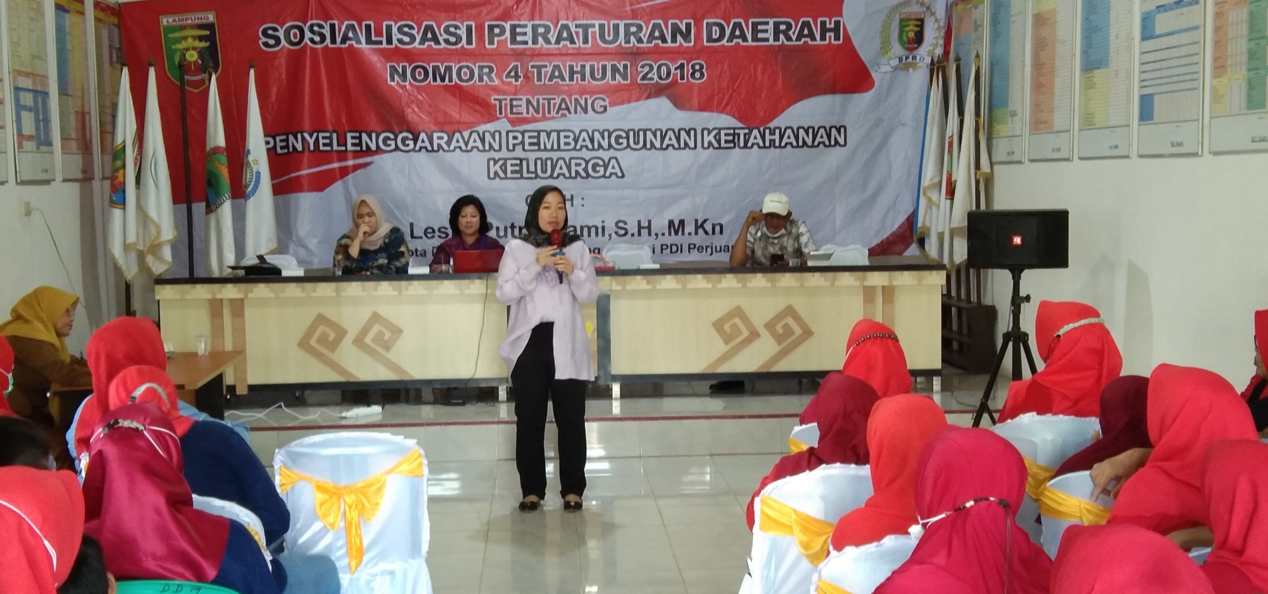 Lampung Selatan – Anggota Dewan Perwakilan Rakyat Daerah (DPRD) Provinsi Lampung, Lesty Putri Utami menggelar sosialisasi peraturan daerah (sosper) no 4 Tahun 2018 Tentang Penyelenggaraan Pembangunan Ketahanan Keluarga, Senin (20/6).