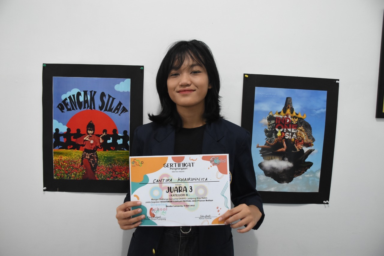 BANDARLAMPUNG – Mahasiswa Program Studi Desain Komunikasi Visual berhasil juara Lomba Manga (Komik) Hisashiburi Cosplay Festival 2022 yang diselenggarakan Ohayo Drawing School pada 15 Juni 2022 di Taman Budaya Lampung.