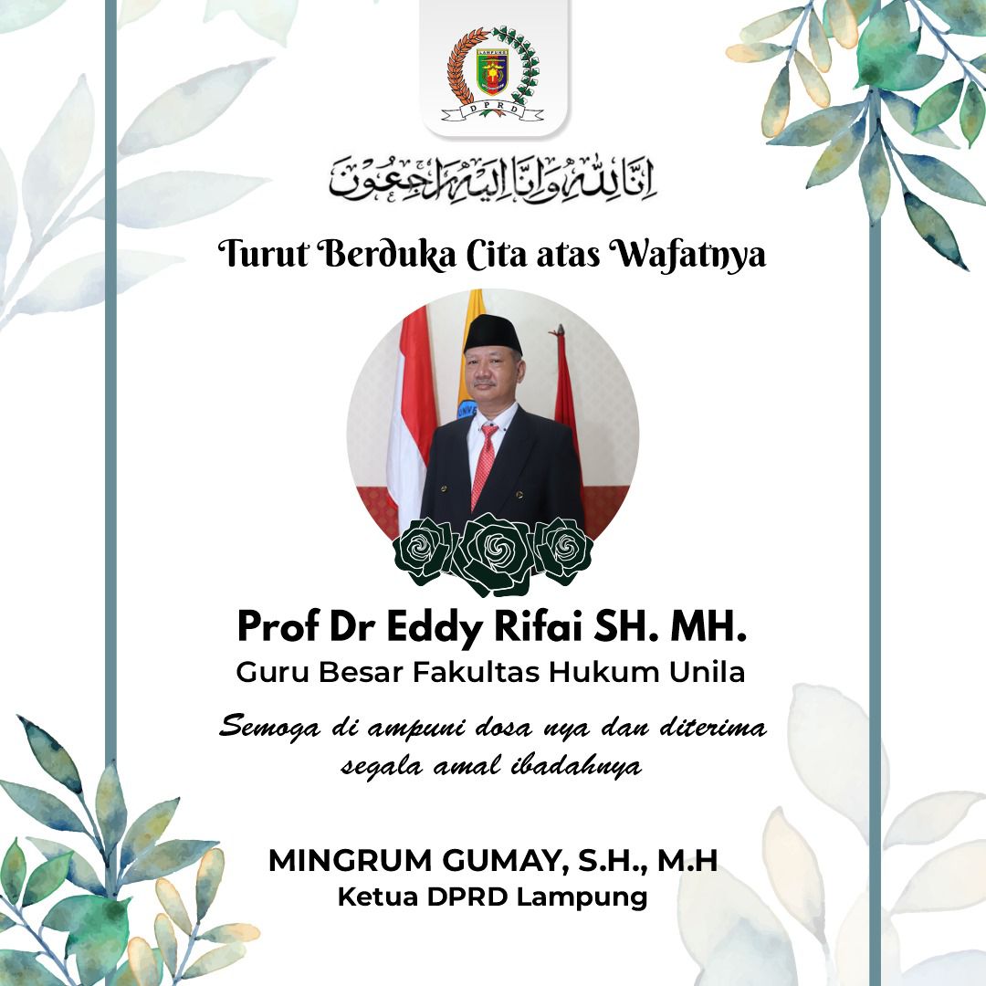 Bandarlampung – Guru besar Fakultas Hukum Unila Prof. Dr Eddy Rifai,  SH, MH bin M. Rifai Matjik dikabarkan meninggal dunia di RS Urip Sumohardjo, Bandarlampung, Kamis (17/8/2023), pukul 23.50 WIB.