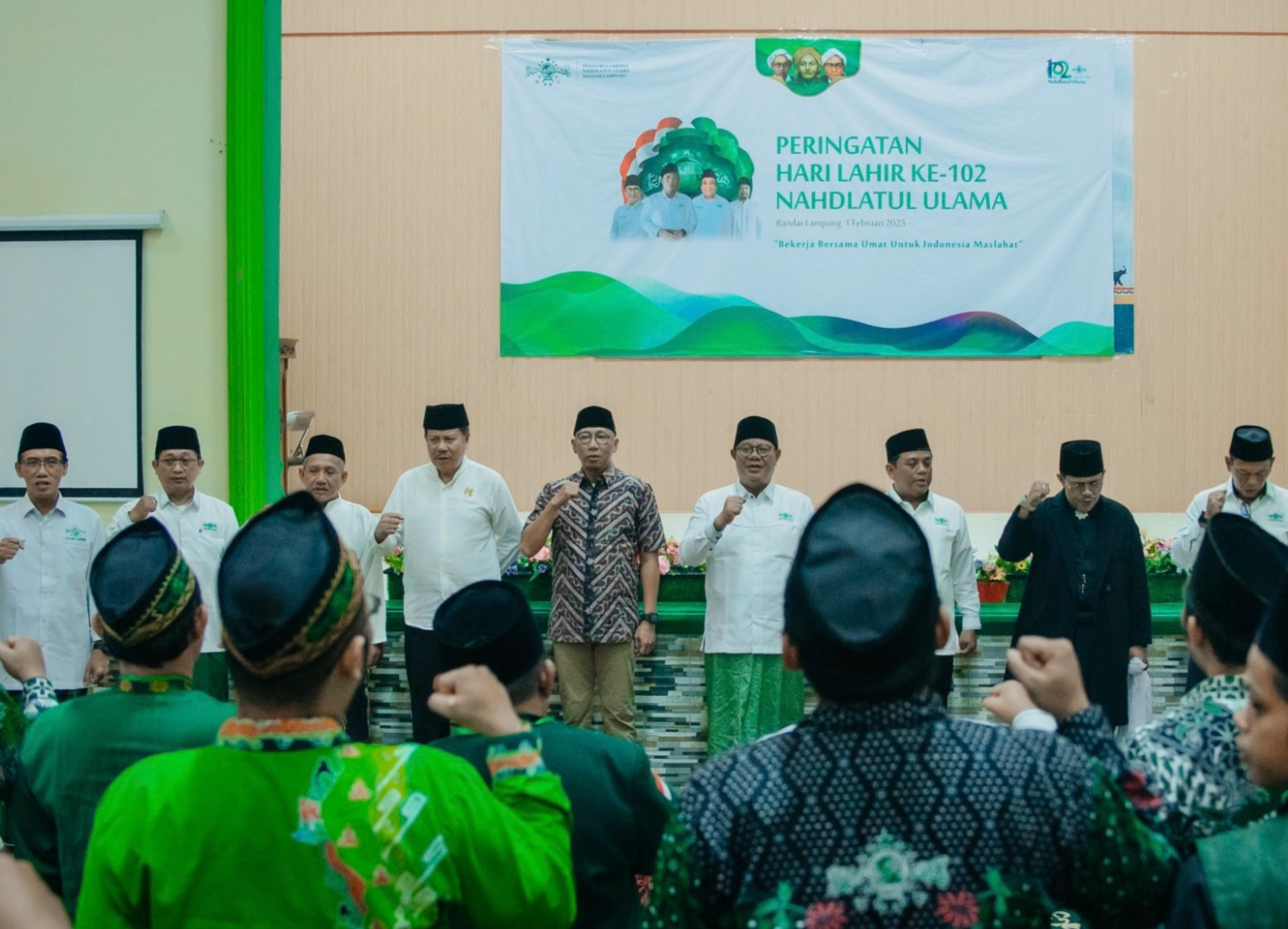 Bandarlampung – Peringatan Hari Lahir ke-102 Nahdlatul Ulama (NU) yang digelar di Bandarlampung, Sabtu malam (1/2), menjadi momentum penting dalam mempererat ukhuwah, meneguhkan komitmen kebangsaan, serta memperkuat peran NU dalam pembangunan daerah. Acara ini dihadiri oleh berbagai tokoh ulama, pengurus NU, serta pemimpin daerah, termasuk Gubernur Lampung terpilih Rahmat Mirzani Djausal.