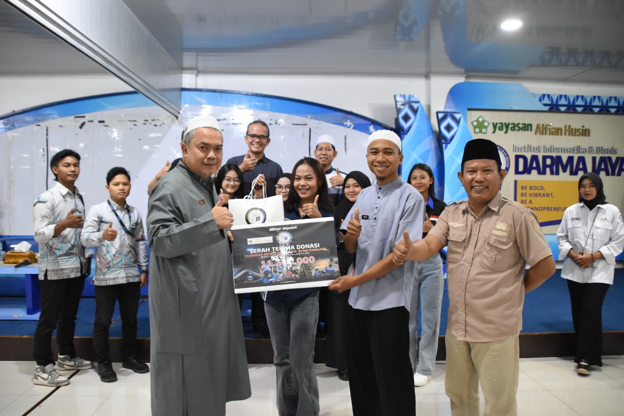 Bandarlampung – Institut Informatika dan Bisnis (IIB) Darmajaya menyalurkan bantuan korban gempa bumi yang terjadi di Cianjur, Jawa Barat, sebesar Rp11.100.000., kepada Daarut Tauhiid (DT) peduli, di Aula Lantai 3 Gedung Alfian Husin, Sabtu (26/11).