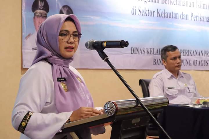 Kepala Dinas Perikanan dan Kelautan Provinsi Lampung Ir. Liza Derni, M.M. dalam sambutannya menyampaikan bahwa akibat perubahan iklim di Indonesia, berpotensi memberikan dampak kerugian ekonomi hingga 544 triliun pada periode 2020-2024, dengan sektor yang paling terdampak yaitu kelautan dan pesisir.