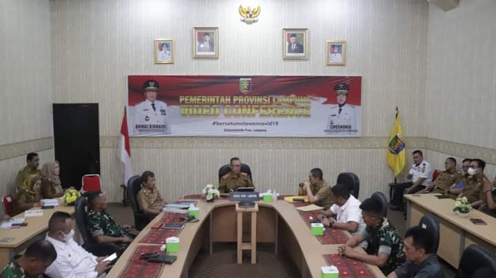 Bandarlampung – Sekretaris Daerah Provinsi Lampung, Fahrizal Darminto, mengikuti Rapat Pengendalian Inflasi Daerah secara daring, di Ruang Command Center Lt.II Dinas Kominfotik Provinsi Lampung, Senin (10/04/2023).
