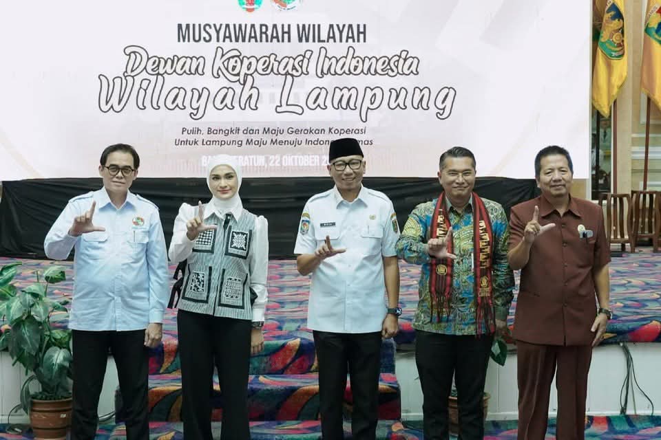 Hal ini disampaikan Gubernur saat menghadiri pembukaan Musyawarah Wilayah (Muswil) Dewan Koperasi Indonesia Wilayah (Dekopinwil) Lampung, di Balai Keratun Lt. III, Rabu (22/10/2025).