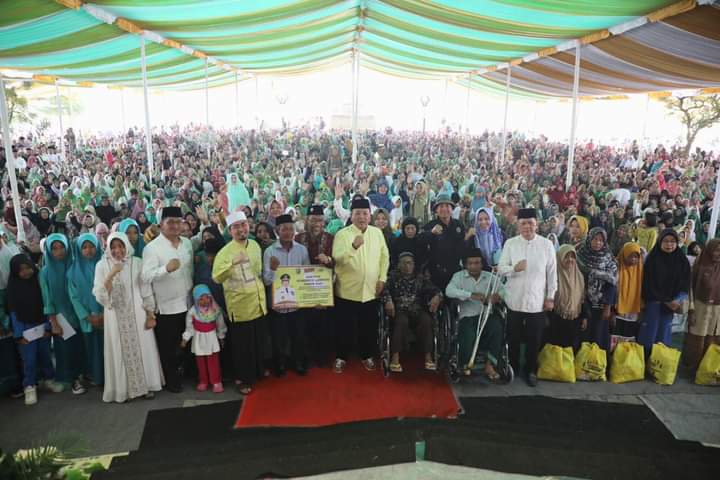 Dalam kesempatan tersebut Gubernur juga menyerahkan sejumlah bantuan berupa santunan kepada anak yatim dan dana hibah kepada rumah ibadah dan TPQ, serta bantuan sosial berupa kursi roda.