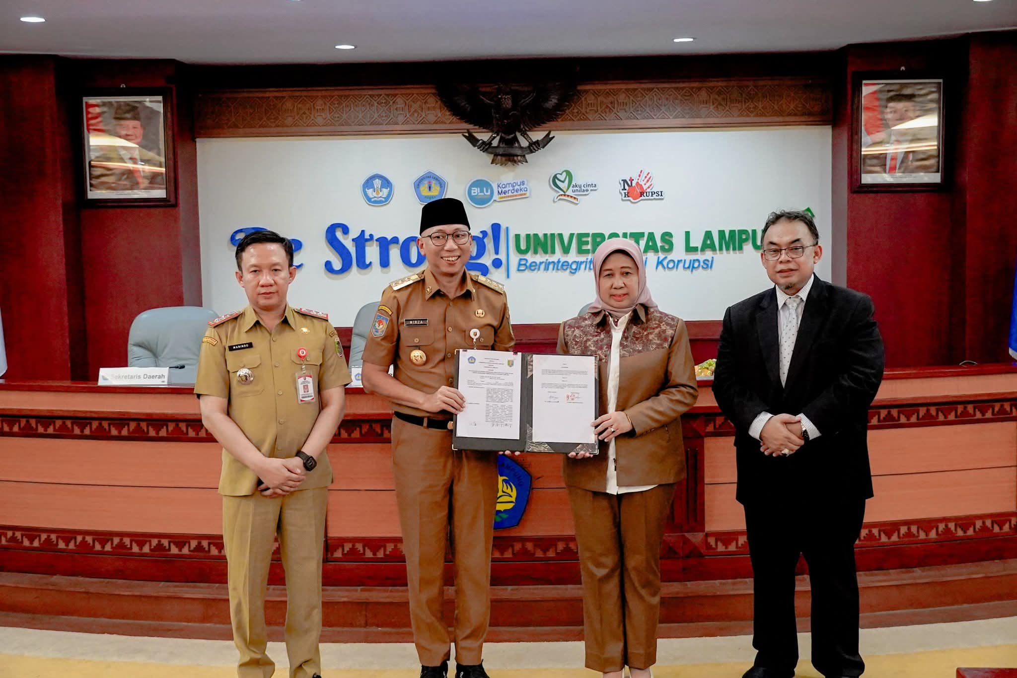 Komitmen tersebut diwujudkan melalui penandatanganan Nota Kesepakatan antara Pemerintah Provinsi Lampung dan Universitas Lampung, yang ditandatangani langsung oleh Gubernur Lampung, Rahmat Mirzani Djausal bersama Rektor Universitas Lampung (Unila), Lusmeilia Afriani yang dilaksanakan di Ruang Sidang Lantai II Gedung Rektorat Universitas Lampung, Senin (21/07/2025).