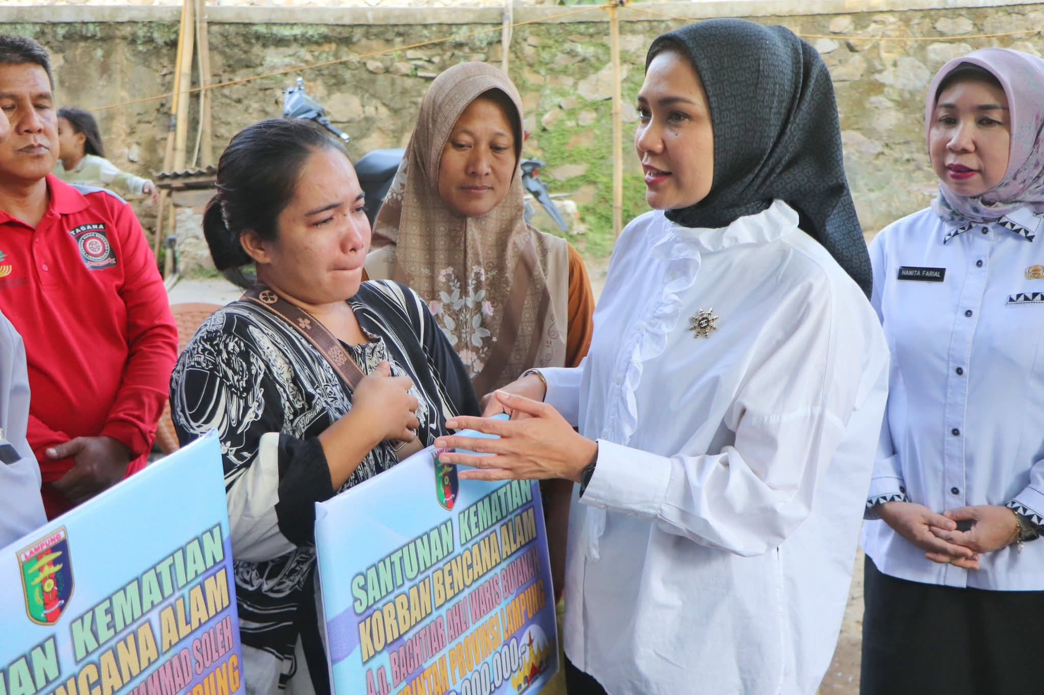 “Kami disini menyerahkan santunan kematian korban bencana alam kemarin. Semoga santunan ini sebagai bentuk kasih sayang dari pihak Provinsi Lampung dapat diterima dengan baik dapat bermanfaat juga untuk keluarga yang ditinggalkan,” harapnya.