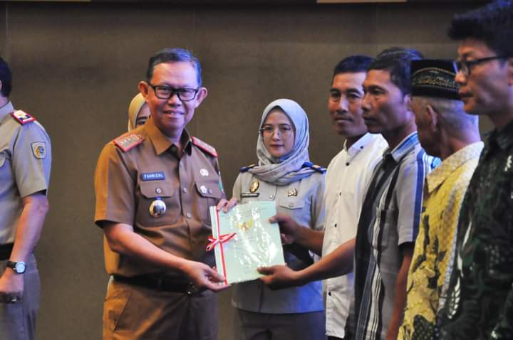 Penyerahan Sertipikat dilakukan secara simbolis kepada 10 masyarakat perwakilan dari 4 Kabupaten, diantaranya Kabupaten Lampung Tengah, Kabupaten Lampung Selatan, Kabupaten Lampung Timur dan Kabupaten Pringsewu. (Rls).