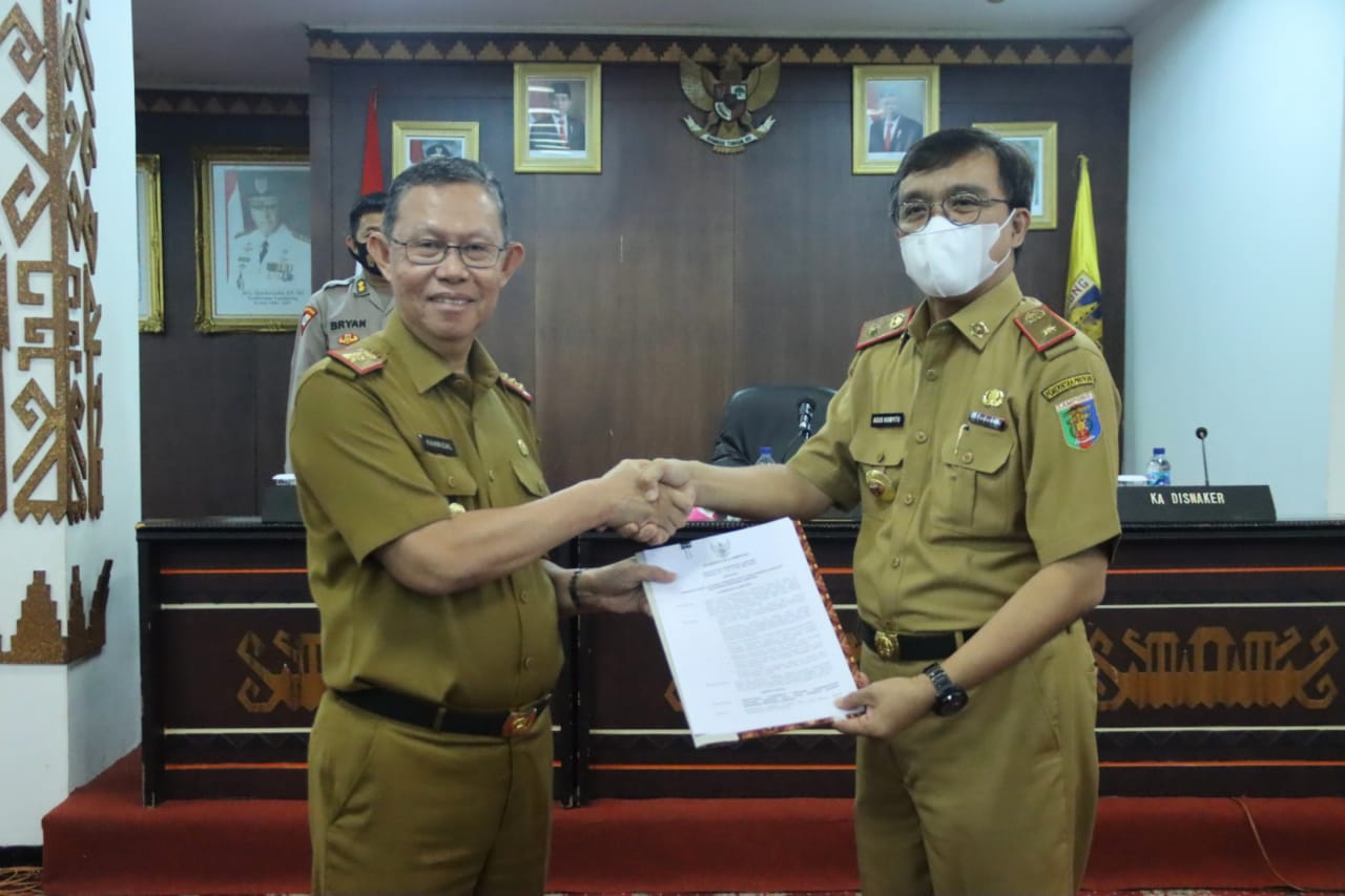 Bandarlampung – Gubernur Lampung Arinal Djunaidi, diwakili oleh Sekretaris Daerah Provinsi Lampung Fahrizal Darminto bersama Polda Lampung, Dinas Ketenagakerjaan Provinsi Lampung, Dukcapil, Dinas Sosial, Dinas Kesehatan, BPJS Ketenagakerjaan, BP3MI, dan Kantor Imigrasi Kelas 1 TPI Bandarlampung, melakukan penandatanganan Pakta Integritas dan Penyerahan salinan Keputusan Gubernur Lampung tentang Standar Operasional Prosedur Layanan Terpadu Satu Atap Pekerja Migran Indonesia (LTSA-PMI) Provinsi Lampung, di Ruang Abung, Balai Keratun Provinsi Lampung, Senin (3/10).