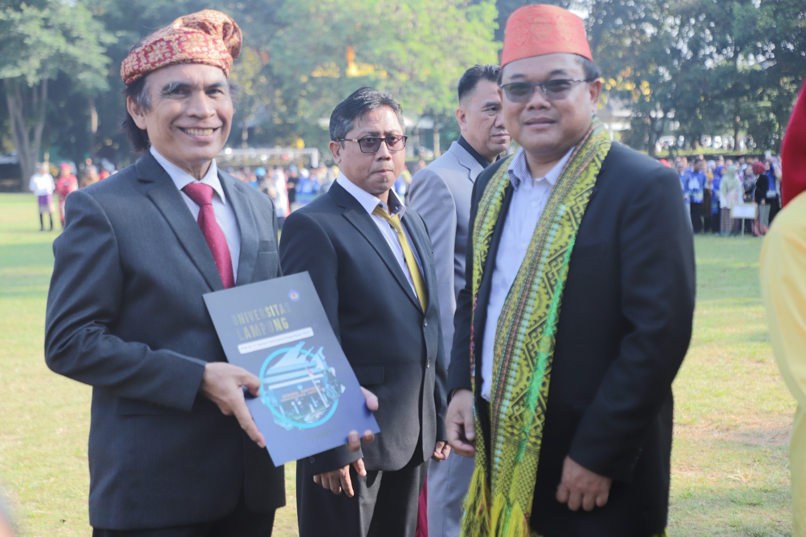 Upacara yang dimulai pukul 07.30 wib ini turut dihadiri para wakil rektor, ketua senat, dekan, dan wakil dekan, direktur Pascasarjana, kepala biro, kepala lembaga, serta kepala unit penunjang akademik. Suasana khidmat dan penuh semangat mewarnai pelaksanaan upacara yang menjadi simbol tekad bersama sivitas akademika dalam memperkuat posisi Unila sebagai universitas yang adaptif dan relevan terhadap perubahan zaman.