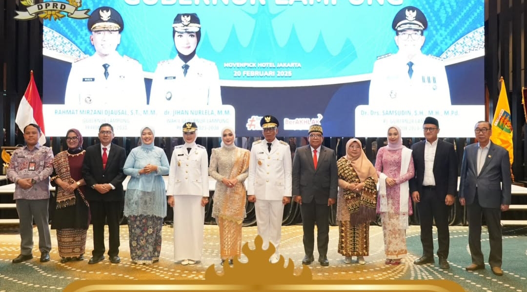 Bandarlampung – Pimpinan DPRD Provinsi Lampung beserta Anggota DPRD Provinsi Lampung dan Sekretaris DPRD Provinsi Lampung menghadiri Acara Serah Terima Jabatan Gubernur Lampung oleh Pj. Gubernur Lampung Bapak Dr. Drs. Samsudin, S.H., M.H., M.Pd kepada Bapak Rahmat Mirzani Djausal, S.T., M.M. sebagai Gubernur Lampung Periode 2025-2030. Bertempat di Movenpick Hotel Jakarta, Kamis (20/2).