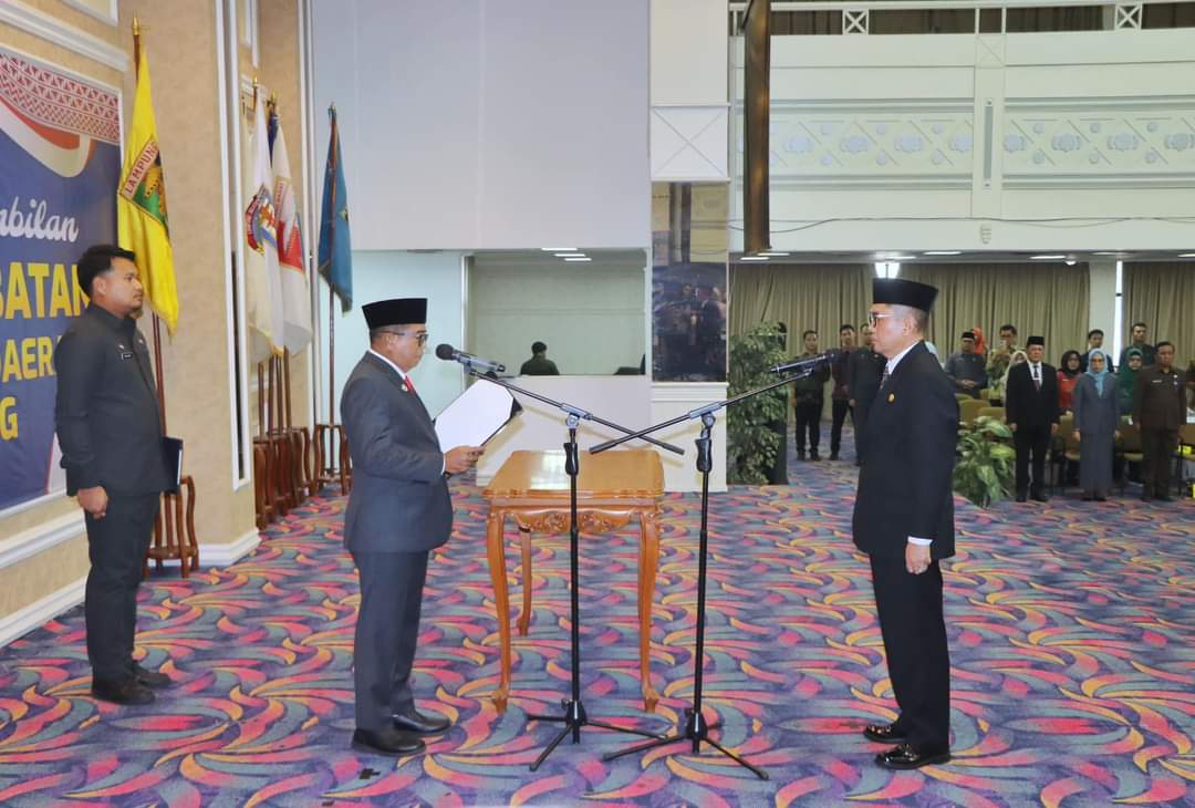Bandarlampung – Penjabat Gubernur Lampung melantik dan mengambil Sumpah Jabatan Penjabat Sekretaris Daerah Provinsi Lampung Ir. Fredy SM, M.M.,CGCAE, di Balai Keratun Lt.3, Komplek Kantor Gubernur Lampung, Jumat (01/11/2024).