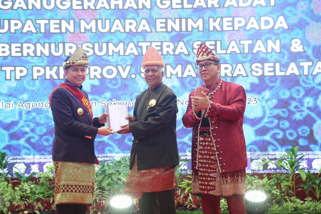 “Penganugerahan gelar adat ini sebagai bentuk rasa cinta, bangga dan bahagia, kami seluruh masyarakat Kabupaten Muara Enim dalam menyambut kehadiran bapak Gubernur,” tandasnya. (*).
