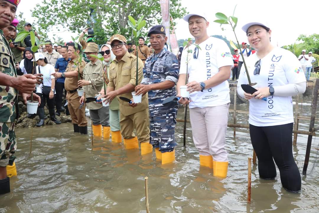 Pj. Gubernur juga mengucapkan apresiasi yang setinggi-tingginya kepada Hotel Golden Tulip Bandar Lampung, Brigif 4 Marinir/BS dan MNC Peduli atas kolaborasi yang luar biasa dengan menanam 20.000 mangrove di Pantai Eco Marine Park.
