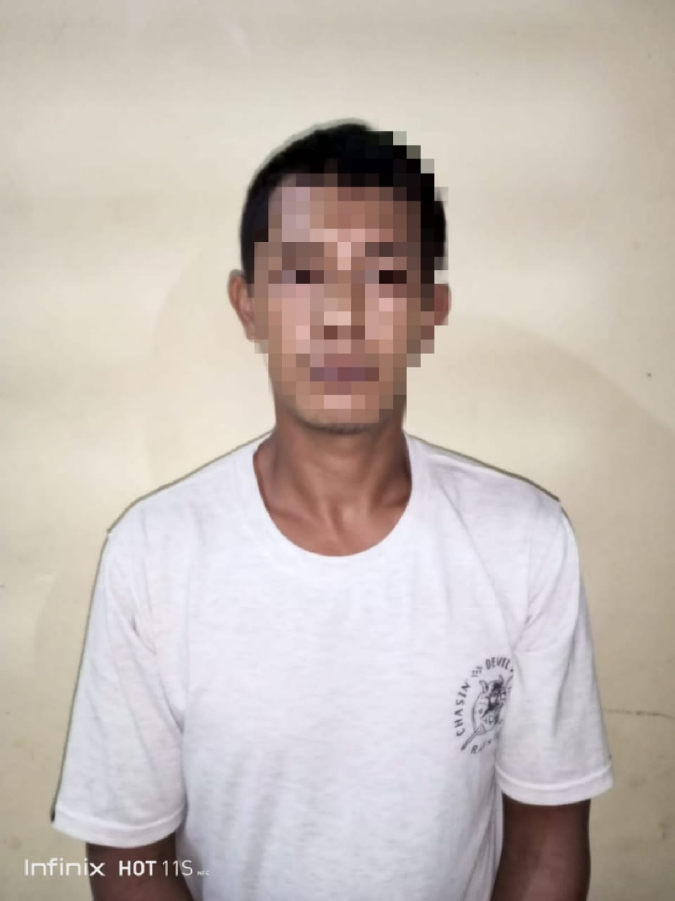 Petugas Kepolisian yang menerima laporan terkait peristiwa tersebut, segera bertindak dan berhasil meringkus tersangka, berikut barang bukti sebatang kayu. (D1).