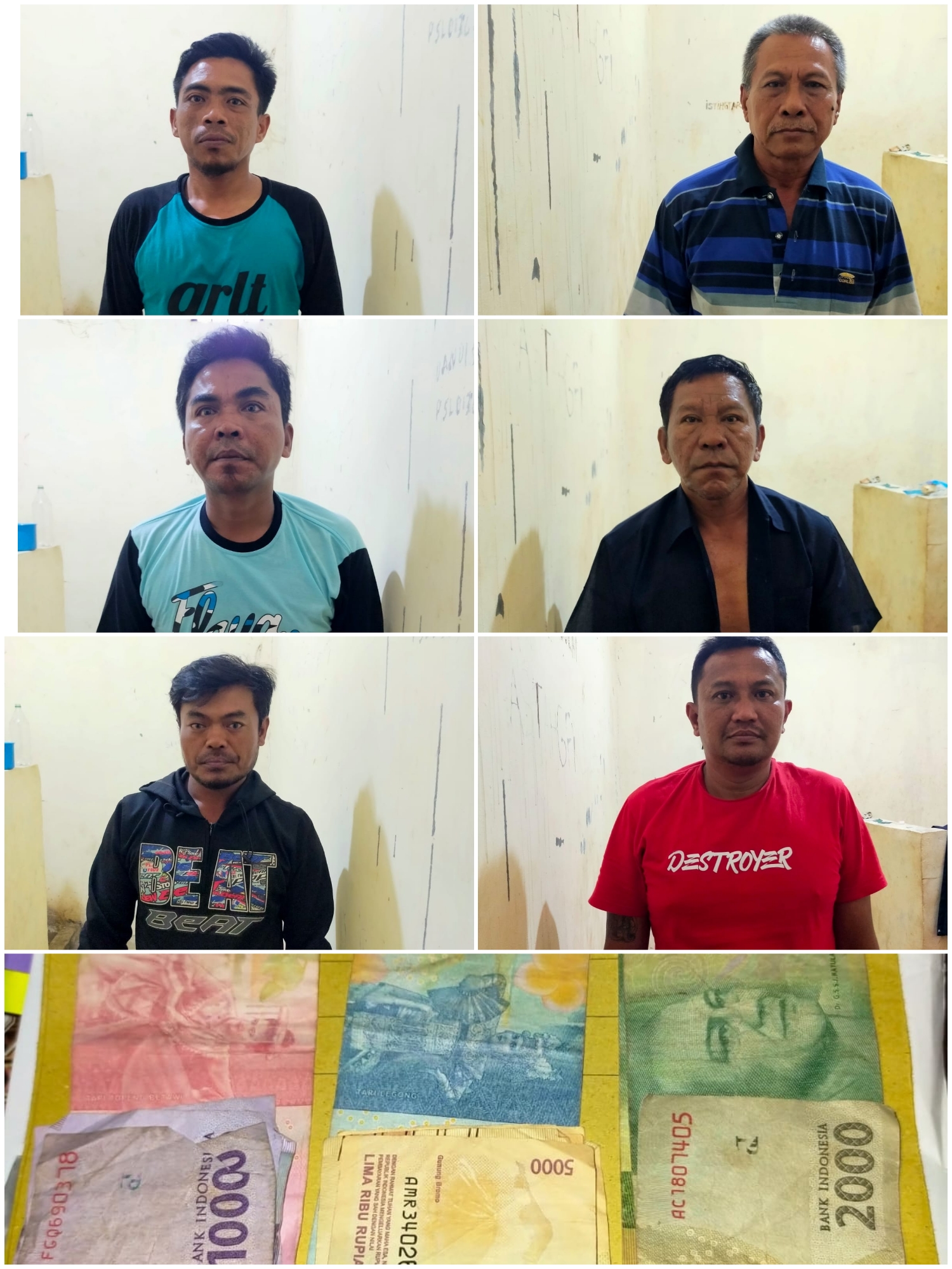 “Para ke 6 tersangka, diduga berkumpul dirumah salah satu warga, yang akan menggelar hajatan, kemudian bermain judi kartu Remi, dengan taruhan uang tunai.”ucapnya”