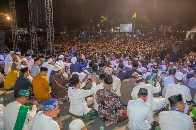 Bandarlampung – Puluhan ribu warga Lampung memenuhi lapangan Hadimulyo Barat, Metro, Lampung, untuk mengikuti pengajian Akbar bertajuk Lampung Bersholawat bersama Habib Syech bin Abdul Qodir Assegaf dan Putri Zulkifli Hasan, Sabtu (9/9).