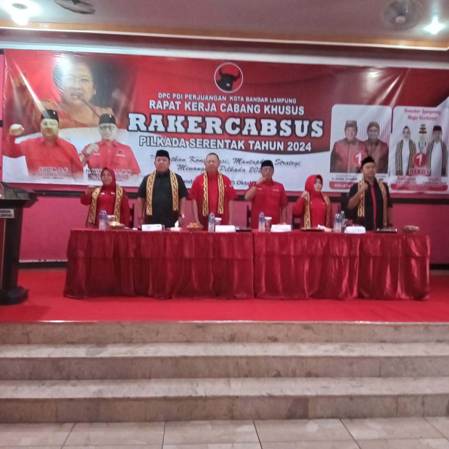 “Ayok kita bersatu bergerak bergandengan tangan bersama-sama bergotong royong menangkan Pilkada 2024. Menangkan Ardjuno dan Redy Pilkada 2024,” ucap Sudin dalam sambutan pada Rakercabsus PDI Perjuangan Kota Bandar Lampung, Sabtu ( 5/10/2024 ).