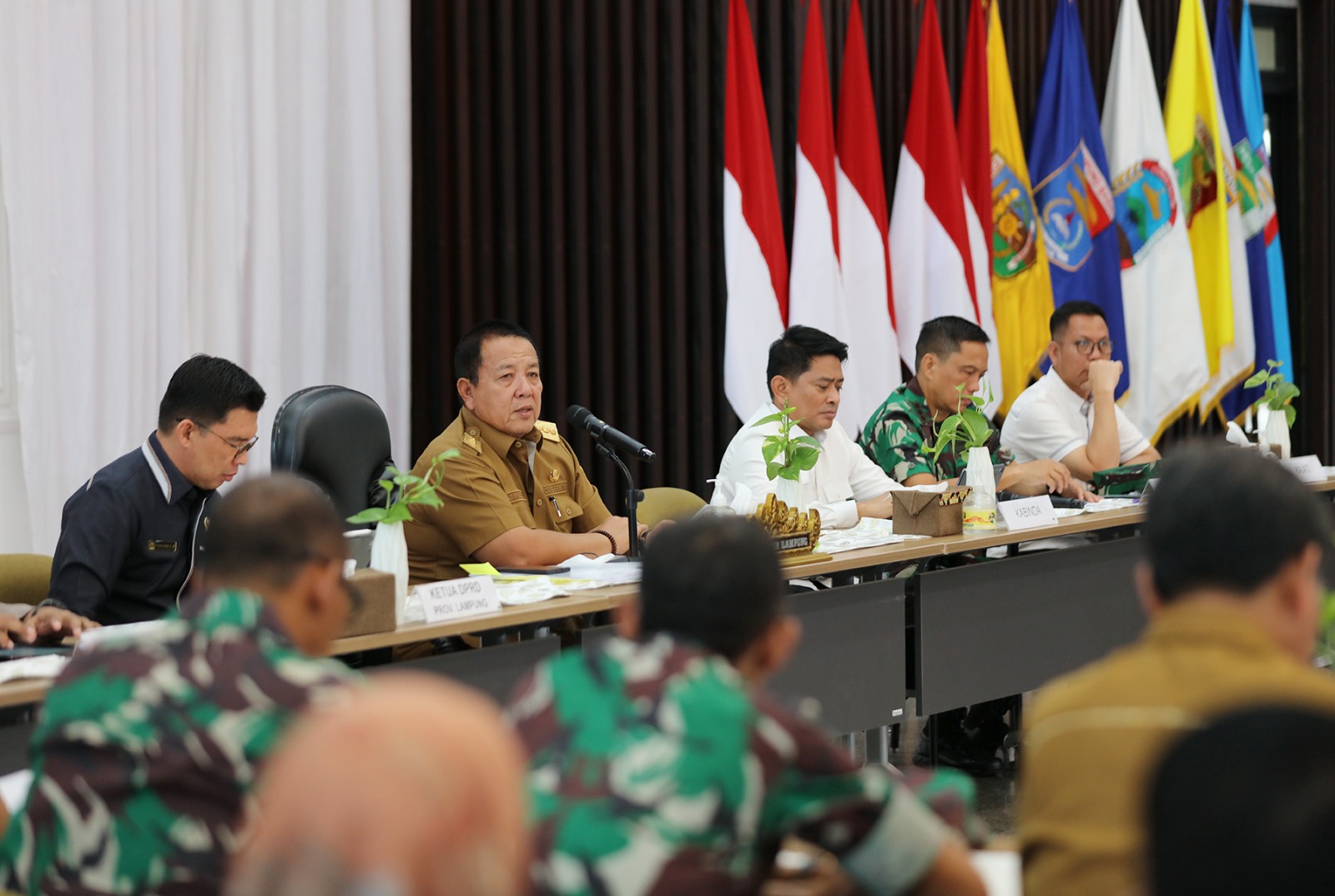 Turut hadir dalam rapat koordinasi tersebut diantaranya Yanuar Irawan (Ketua Komisi V DPRD Provinsi Lampung), Aliansyah (Asintel Kejati Lampung), Brigjen Pol. Harseno, S.I.K., M.M. (Kabinda Lampung), Kombes Pol. Amiludin Roomtaat, S.I.K. (Karo Ops Polda Lampung), Kol. Inf. Prasetyo (Kas Rem Korem 043/Gatam), Kol. Laut (P) Mohammad Nazarudin (Danlanal Lampung), Letkol. Mar. Anugerah Auliadi Santoso (Wadan Brigif 4 Mar/BS), Mayor Kal. Sukendro (Kadislog Lanud Lampung), Budiyono (KPw BI Provinsi Lampung), Puji Raharjo (Kakanwilkemenag Provinsi Lampung), serta sekitar 100 orang terdiri dari Kepala OPD Provinsi Lampung, Bupati/Walikota se-Provinsi Lampung dan undangan lainnya. (Rls).