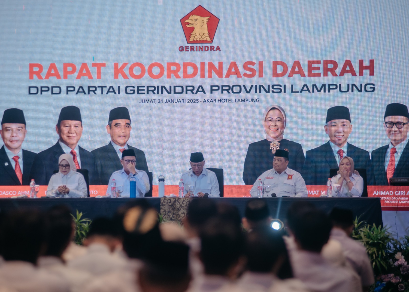 Bandar Lampung – Ketua Dewan Pimpinan Daerah (DPD) Partai Gerindra Provinsi Lampung, Rahmat Mirzani Djausal, menyampaikan pidato politiknya dalam Rapat Koordinasi Daerah (Rakorda) Partai Gerindra di Hotel Akar, Jumat malam (31/1). Dalam pidatonya, Mirza—sapaan Rahmat Mirzani Djausal—menekankan pentingnya kekompakan dan kerja keras seluruh kader untuk mewujudkan visi besar partai dan memenuhi harapan rakyat.