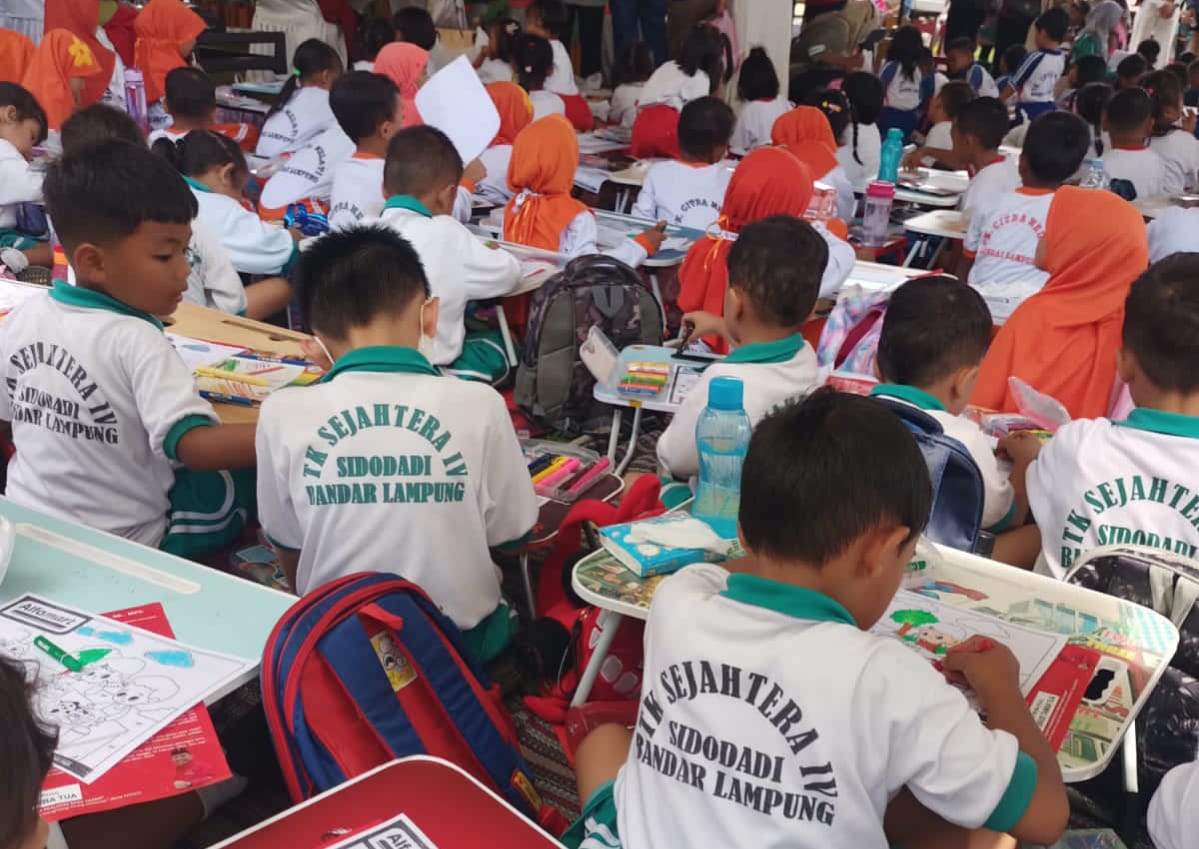 Bandar Lampung – Suasana meriah terlihat di Lapangan PTP Nusantara 1 Teuku Umar, Bandar Lampung, pada Selasa (29/10/2025). Ratusan anak-anak tampak antusias mengikuti event lomba mewarnai, fashion show, dan membatik yang diselenggarakan oleh Alfamart Branch Lampung bekerja sama dengan IGTKI PGRI Kecamatan Kedaton.