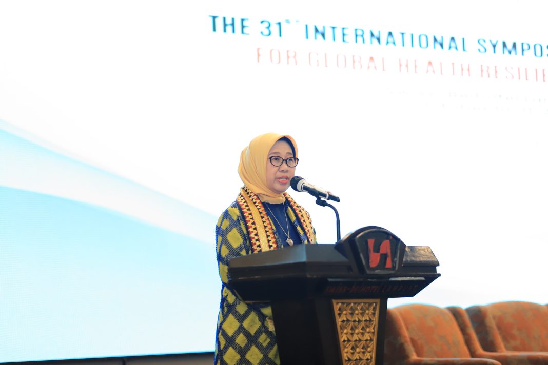 Prof. Lusi dalam sambutannya menyampaikan, tema simposium ini sangat relevan dengan perkembangan kesehatan global saat ini. Diperlukan kesadaran dan kerja sama dari berbagai pihak, baik akademisi, tenaga kesehatan, maupun masyarakat luas untuk membangun ketahanan kesehatan yang terintegrasi.