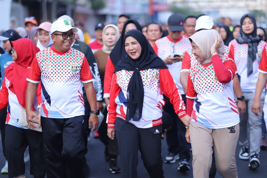 Bandarlampung – Rektor Universitas Lampung (Unila) Prof. Dr. Ir. Lusmeilia Afriani, D.E.A., IPM, ASEAN Eng., mengikuti jalan sehat dalam rangka memeriahkan peringatan Hari Ulang Tahun (HUT) ke-342 Kota Bandarlampung, Minggu (23/6).