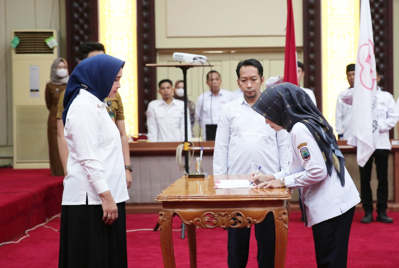 Bandarlampung – Ketua Palang Merah Indonesia (PMI) Provinsi Lampung Ibu Riana Sari Arinal melantik Winarni Nanang Ermanto sebagai Ketua PMI Kabupaten Lampung Selatan Masa Bakti 2022-2027 di Gedung Pusiban, Komplek Kantor Gubernur Lampung, Senin (24/10).