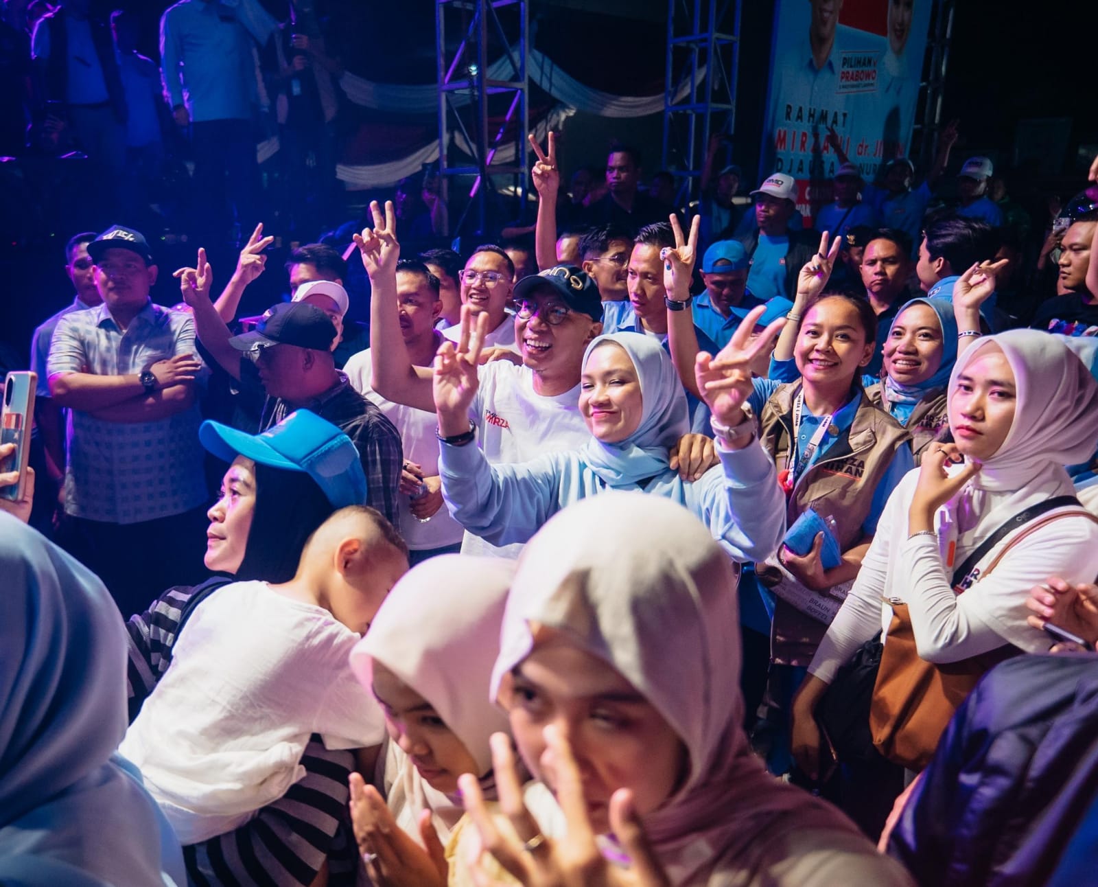 “Hujan malam ini bukan halangan. Kami percaya, kita bisa mewujudkan Tanggamus yang lebih maju. Jalan-jalan akan semakin baik, lapangan pekerjaan terbuka, pelayanan kesehatan seperti BPJS akan lebih maksimal, dan pendidikan akan menjadi prioritas utama. Jangan lupa, tanggal 27 November nanti, coblos nomor 2 untuk gubernur dan bupati Tanggamus,” ujar Mirza—sapaan Rahmat Mirzani Djausal—dengan semangat.