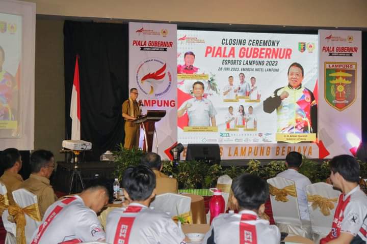 Bandar Lampung–Gubernur Lampung diwakili Sekretaris Daerah Provinsi Lampung Fahrizal Darminto menutup Kegiatan Perlombaan Olahraga Elektronik (E-Sports) Piala Gubernur, bertempat di Ballroom Hotel Emersia, Bandar Lampung, Senin (26/06/2023).