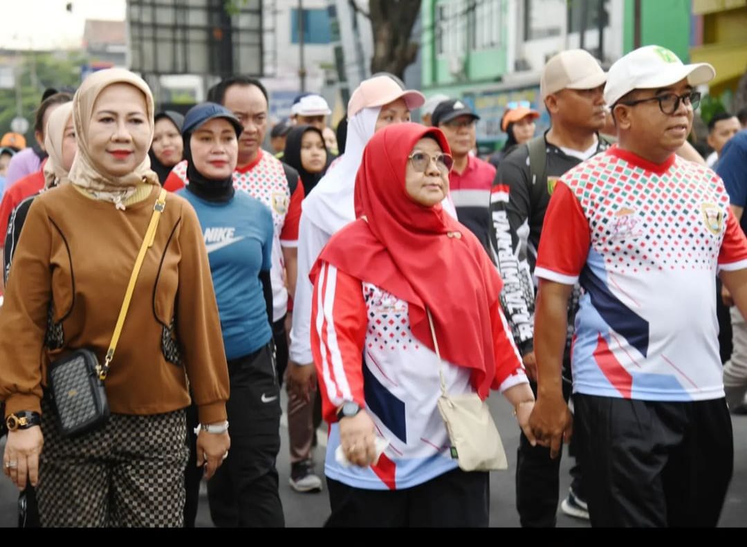 Pj. Gubernur Lampung Samsudin juga berkesempatan mengikuti jalan sehat ini, menikmati udara sejuk di pagi hari dan suasana keindahan Kota Bandarlampung.