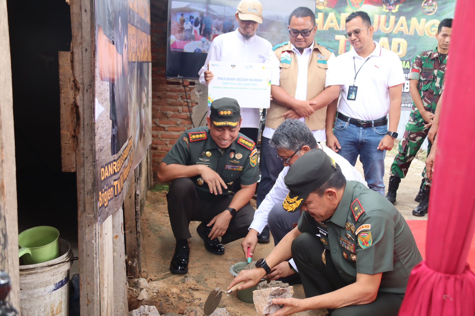 Pelaksanaan Program bedah rumah YBM PLN dan Korem 048 ditandai dengan kegiatan peletakan batu pertama yang dilaksanakan langsung oleh Komandan Resor Militer 043 (Danrem), Brigjen TNI Rikas Hidayatullah, S.E., M.M dan perwakilan General Manager PLN UID Lampung yakni Senior Manger Keuangan, Komunikasi dan Umum Rio Widiya Nugraha didampingi oleh tim YBM dan perangkat daerah setempat di kediaman salah satu penerima manfaat Bapak Tri Wahyudi.