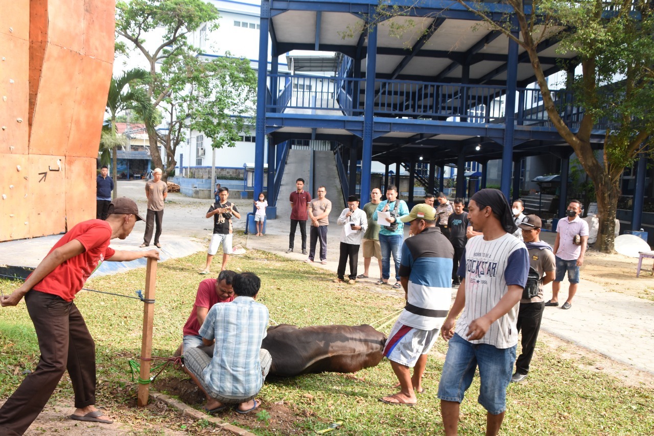 BANDARLAMPUNG – Institut Informatika dan Bisnis (IIB) Darmajaya melakukan penyembelihan enam hewan kurban dalam perayaan Iduladha 1443 H, di Kampus Biru pada Senin (11/7/22).