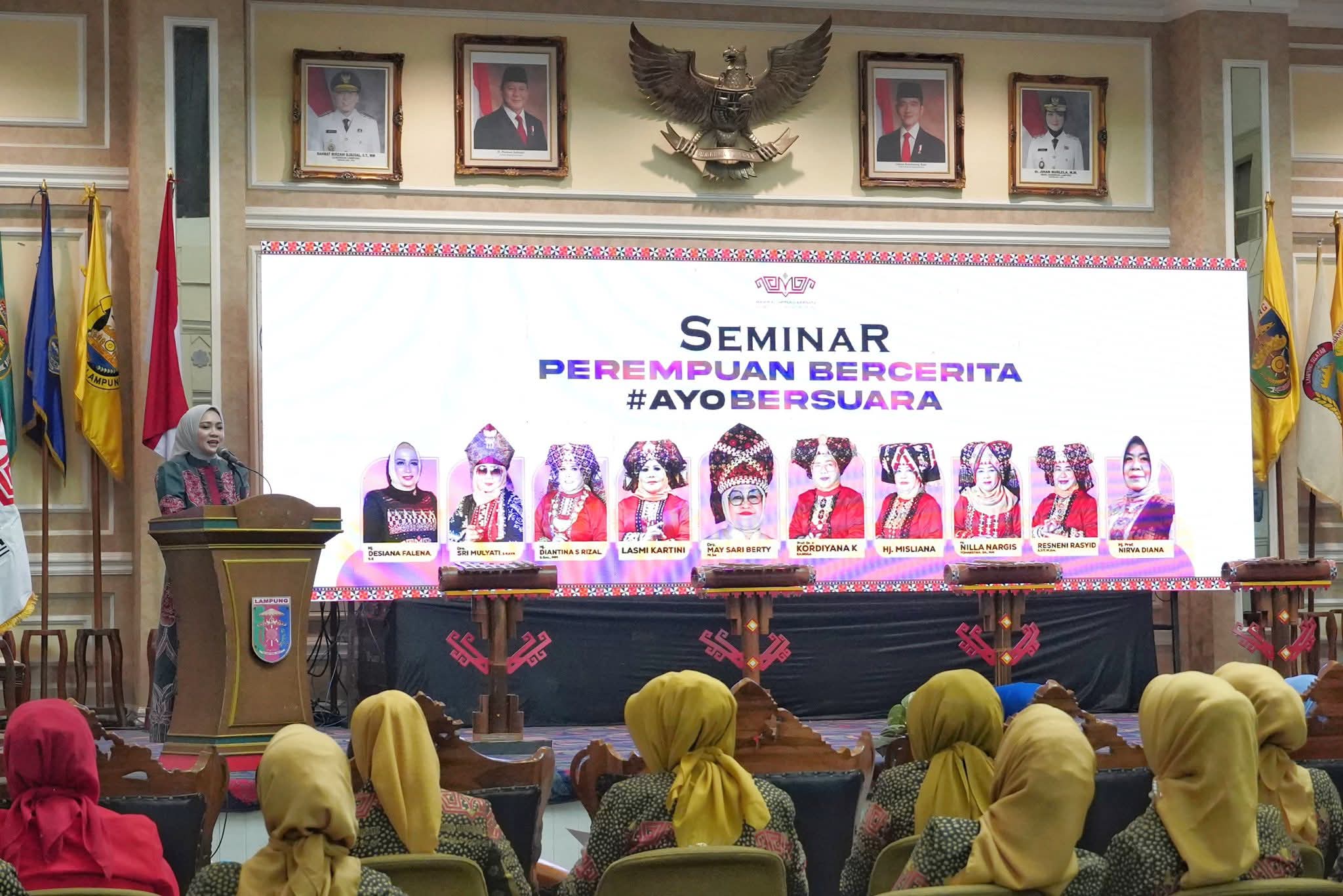 Dalam sambutannya, Ketua TP. PKK Provinsi Lampung menekankan pentingnya seminar ini sebagai wadah bagi para perempuan untuk menyuarakan pengalaman dan mencari solusi atas permasalahan yang dihadapi.