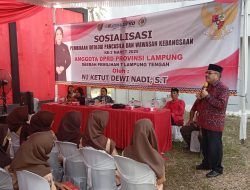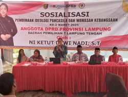 Lampung Tengah – Anggota DPRD Lampung Fraksi PDI Perjuangan Ni Ketut Dewi Nadi, ST kembali menggelar sosialisasi pembinaan Ideologi Pancasila dan Wawasan Kebangsaan ( IPWK ) tahap ke-2 Maret 2025 di Kota Gajah, Lampung Tengah, Sabtu ( 22/03 ).