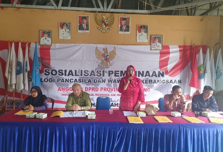 Pesawaran – Anggota DPRD Provinsi Lampung, Nurhasanah kembali menggelar Sosialisasi Pembinaan Ideologi Pancasila dan Wawasan Kebangsaan (IPWK). Kali ini, kegiatan dilakukan di Desa Rejo Agung Kec. Tegineneng Kab. Pesawaran, Minggu 16 Oktober 2022.
