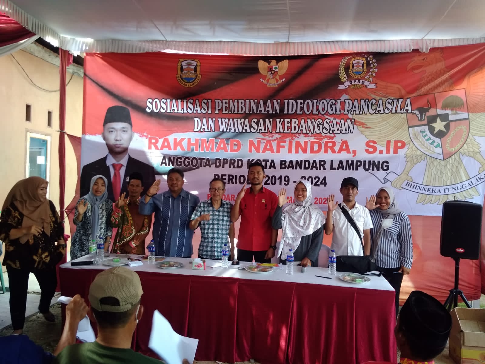 Bandar Lampung, Anggota DPRD Kota Bandar Lampung Rakhmad Nafindra, S.IP melaksanakan Sosialisasi Pembinaan Ideologi Pancasila dan Wawasan Kebangsaan ( IPWK) di Kelurahan Sukarame Kecamatan Sukarame, Jum’at siang (17/3).