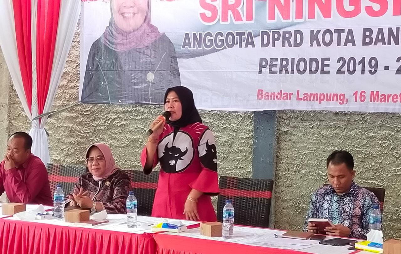 Bandar Lampung, Anggota DPRD Kota Bandar Lampung dari Fraksi PDI Perjuangan Sri Ningsih Djamsari, SH menggelar sosialisasi Ideologi Pancasila dan Wawasan Kebangsaan ( IPWK) di Kelurahan Sukarame Kecamatan Sukarame, Kamis ( 16/3).