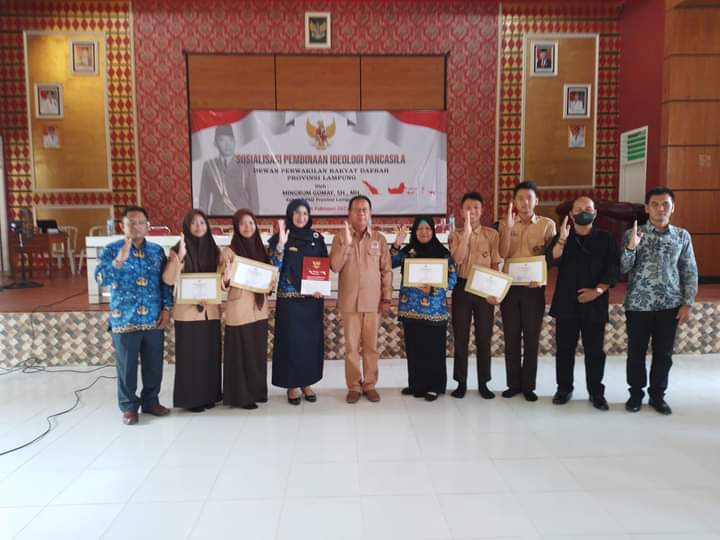 Bandarlampung – Ketua DPRD Lampung Mingrum Gumay SH,. MH menggelar sosialisasi Pembinaan Ideologi Pancasila (PIP) di SMA N 1 Kota Gajah, Lampung Tengah (Lamteng), Jum’at (17/2).