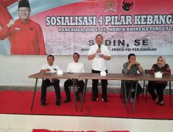 Bandar Lampung, Anggota DPR RI Fraksi PDI Perjuangan Daerah Pemilihan ( Dapil ) I, Sudin, SE, menggelar sosialisasi 4 pilar kebangsaan di Aula Lengkung Langit 2, Kecamatan Kemiling, Kota Bandar Lampung, Jum’at pagi ( 21/03).
