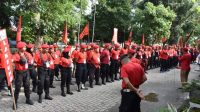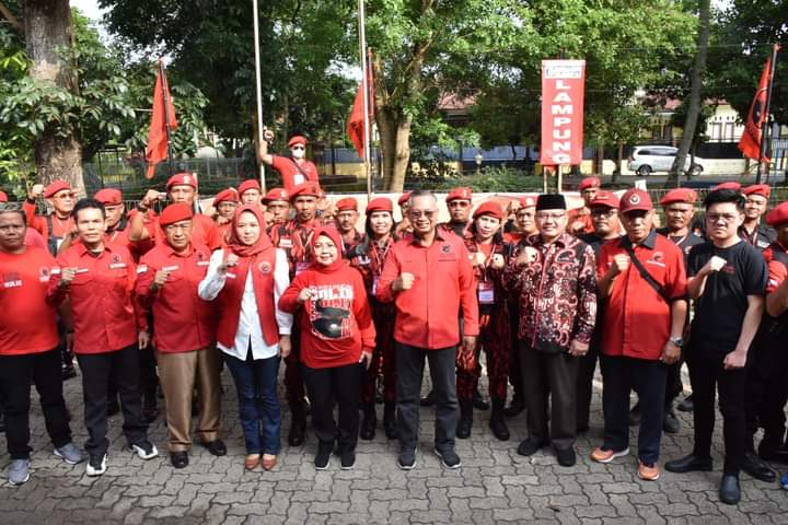 Bandarlampung – Sekretaris DPD PDI Perjuangan Ir H Sutono, MM melepas sebanyak 70 Satgas Cakrabuana Lampung menuju Cibubur di halaman kantor partai setempat, Senin (19/6).