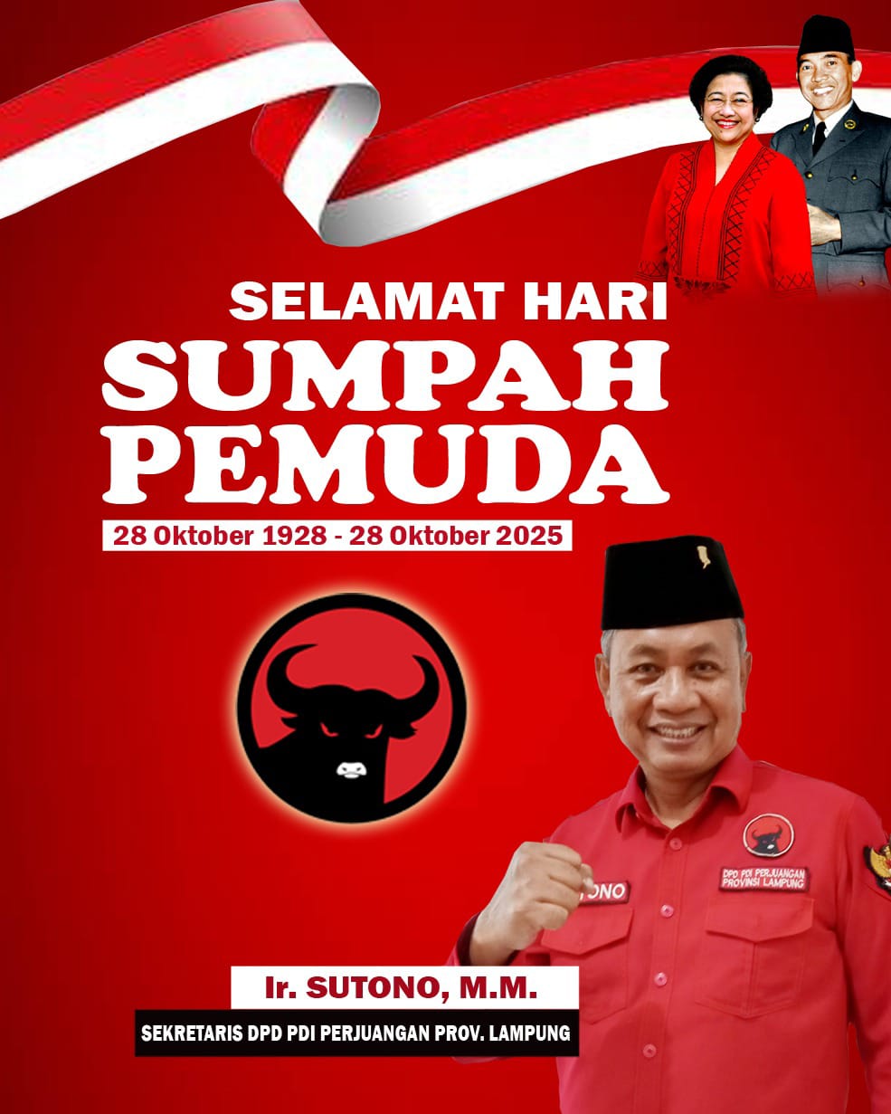 Bandarlampung – Sekretaris DPD PDI Perjuangan Lampung sekaligus Calon Ketua DPD PDI Perjuangan Lampung, Periode 2025-2030, Ir. Hi. Sutono, MM menegaskan bahwa semangat Sumpah Pemuda bukan hanya sekedar simbol sejarah, melainkan kekuatah hidup yang harus terus dijaga melalui tindakan nyata generasi penerus bangsa.