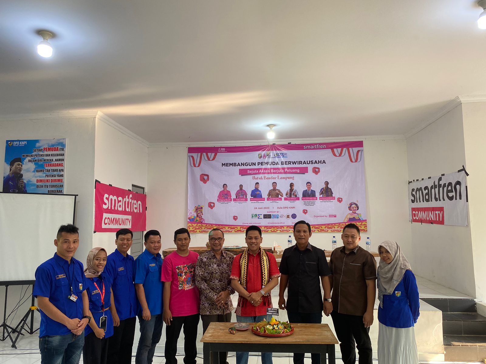 Turut hadir Kabid Pemuda Dispora Provinsi Lampung, Sekretaris KNPI Provinsi Lampung Eka Setiawan, Ketua OKK KNPI Provinsi Lampung Topan Aquardi, beserta pengurus KNPI provinsi Lampung, Owner Rias Digital Printing Randi Yuki Pratama, Owner Angkringan Pemuda Ramadhani Lil Alamin, Leader Smartfren Community Agung Sujadi. (*).