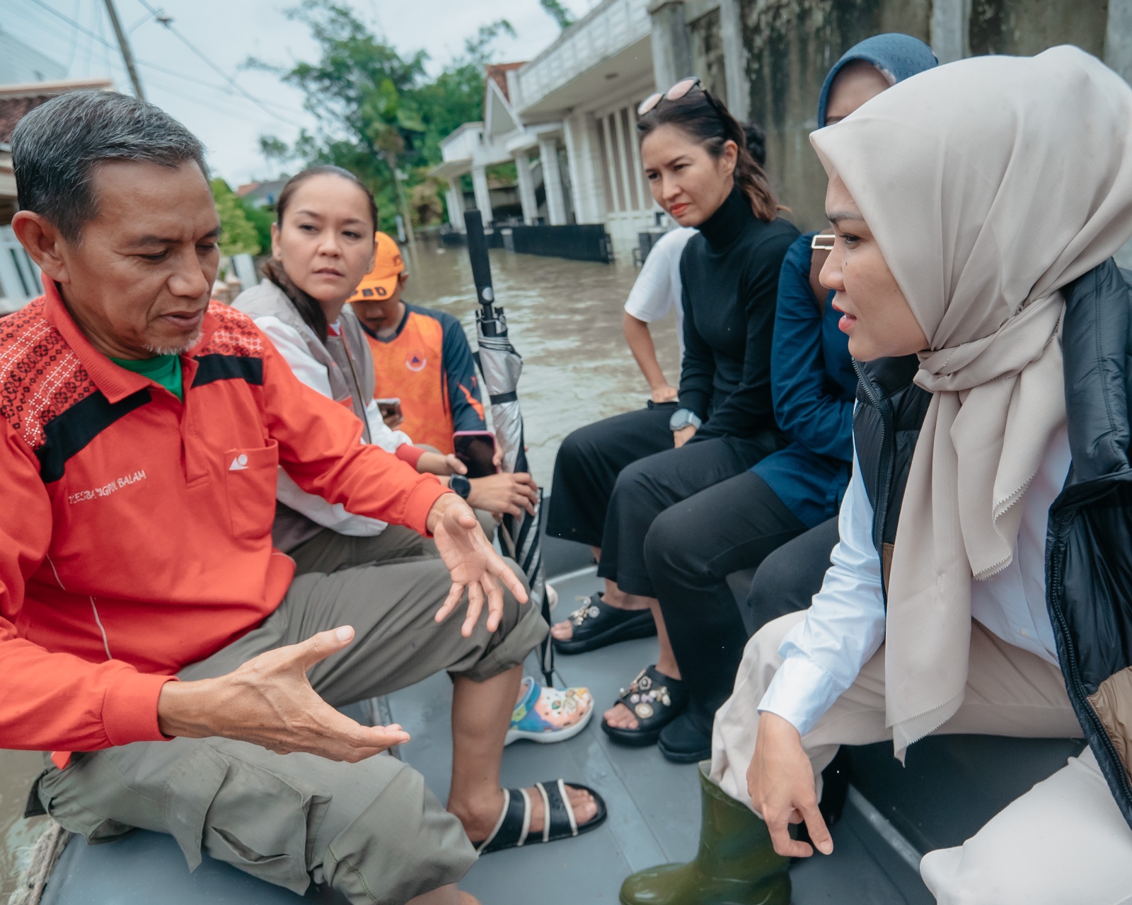 Selain melayat ke keluarga korban, Wulan Mirza juga meninjau daerah-daerah yang masih tergenang banjir. Salah satu titik yang dikunjungi adalah Kelurahan Pematang Wangi, Kecamatan Way Kandis. Untuk mencapai lokasi, Wulan Mirza dan rombongan harus menaiki perahu karet akibat tingginya genangan air.